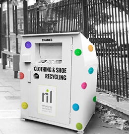 RIL partner with charities, local authorities, waste companies and schools, aiming to provide a good, reliable service and transparent full cycle recycling processes for end of life clothing, shoes and accessories.